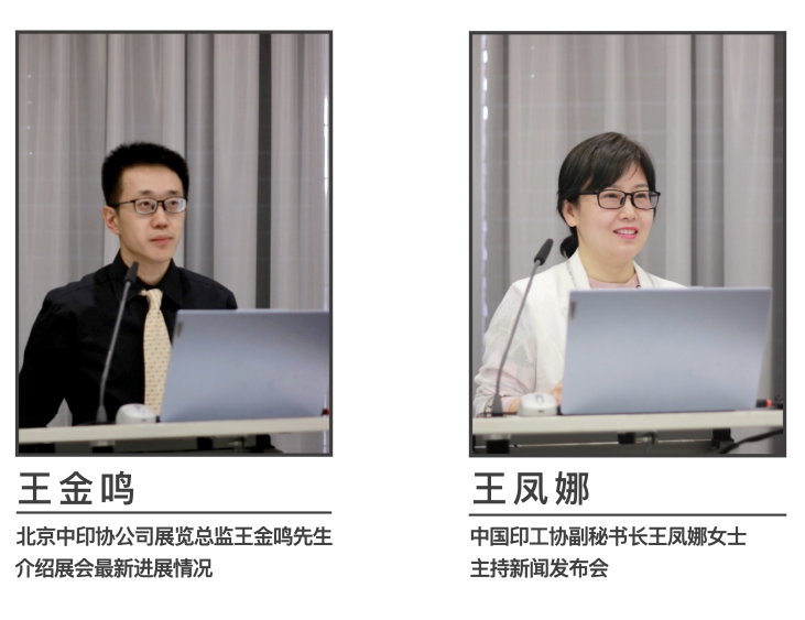 本次新闻发布会由中国印刷及设备器材工业协会(以下简称中国印工协)副秘书长王凤娜女士主持。中国印工协副理事长杨斌先生、北京中印协华港国际展览有限公司(以下简称北京中印协华港)董事总经理李嘉羊先生分别致辞,北京中印协华港展览总监王金鸣先生详细介绍了CHINA PRINT 2025目前的筹备情况。